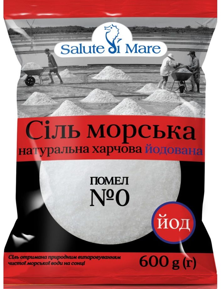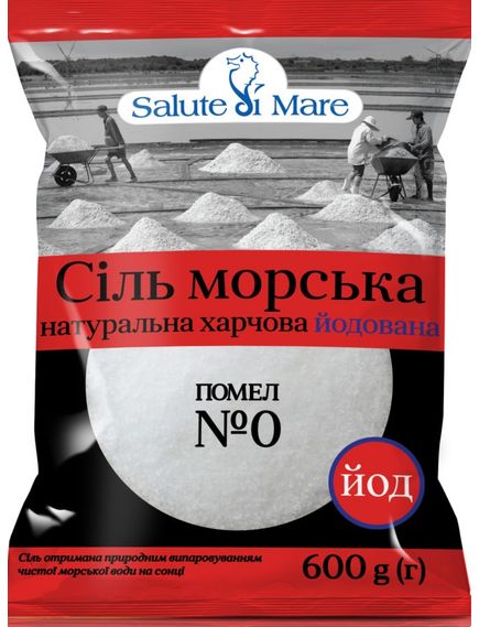 Морська сіль Йодована ТМ “Salute di Mare” в м’якій упаковці 600 г створена шляхом випаровування чистої морської води під впливом південного сонця та вітру. Після чого додатково збагачена йодом для можливості поповнення недостатнього надходження йоду з їжею і для профілактики йододефіциту.