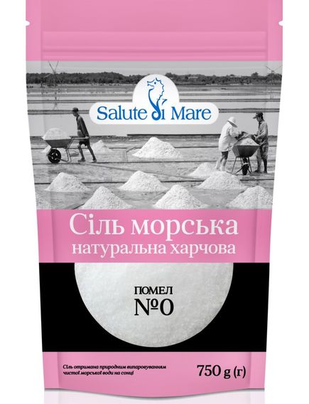 Морська харчова сіль Дрібна ТМ “Salute di Mare” в м’якій упаковці 600 г створена шляхом випаровування чистої морської води під впливом південного сонця та вітру. Морська сіль складається з дрібних кристалів, які мають властивість швидко розчинятися, надаючи стравам користь і смак.