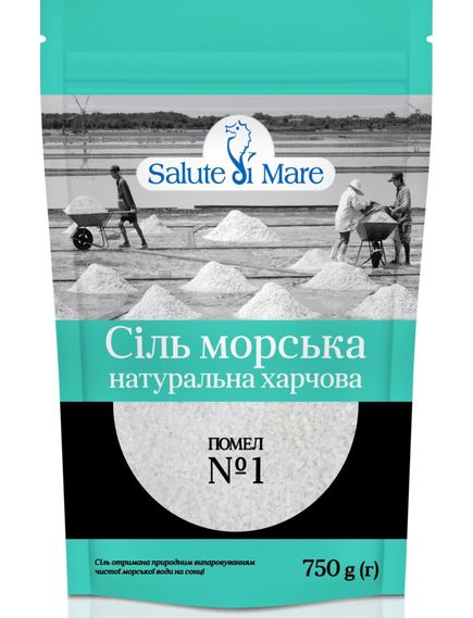 Морська сіль Середня Salute di Mare – натуральний корисний продукт високої якості. Сама природа за допомогою південного сонця і вітру створює сіль «Salute di Mare», випарюючи чисту морську воду.