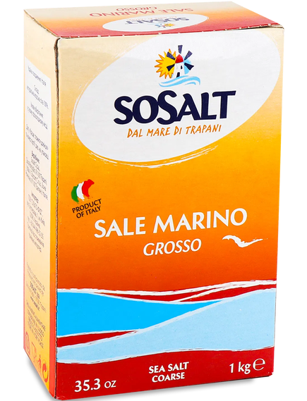 SoSalt Сіль морська крупна 1 кг – це натуральна морська сіль великого помелу, отримана шляхом випаровування морської води. Виробник SoSalt – італійська компанія, що спеціалізується на виробництві високоякісної солі.