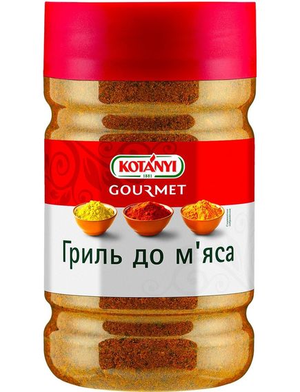 Суміш таких інгредієнтів як паприка, перець і коріандр надають м'ясу неповторного смаку. Гриль до м'яса від Котані створений у найкращих традиціях приготування справжнього Барбекю, надає дивовижно витонченого та пікантного аромату будь-якому різновиду м'яса.