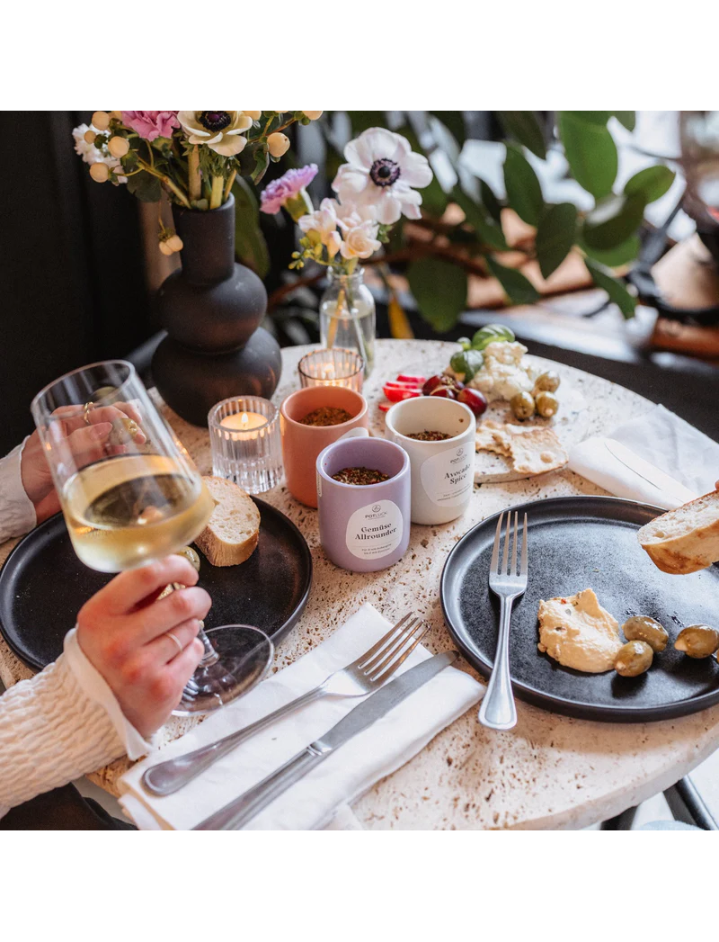 Склад: морська сіль, цибуля, перець, м'ята, часник, помідор, чилі, рожевий перець. Може містити сліди злаків, що містять глютен, яйце, молоко, мигдаль, гірчицю, селеру, насіння кунжуту та арахіс.