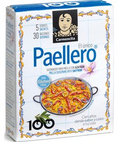 Склад: часник, сіль (25%), паприка, кукурудзяне борошно, барвник Е-102, перець, гвоздика та шафран (2,5%). Як використовувати? Перш ніж додати рис, висипте вміст одного пакетика на кожні шість порцій (600 г рису) у форму для паельї. Ніяких інших спецій не додавайте, просто додайте...