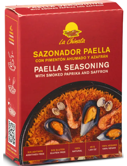 Приправа для паельї розроблена з нашої копченої порошкової паприки "La Chinata" та шафрану. Це 100% натуральний продукт без барвників і консервантів. Не містить глютену.