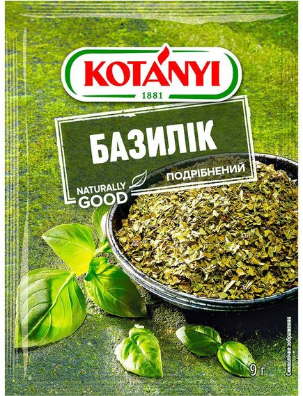 Базилік від торговою марки Kotanyi - це витончени прянощі з вишуканим ароматом та смаком. Він належить до сімейства м'ятних трав. Базілік Kotanyi використовується як приправа до багатьох страв. Базилік має індійське походження, але зараз також поширений у країнах Середземномор'я. Нині це незамінна спеція в італійській, французькій та азіатській кухнях. Базилік подрібнений від Котані просушується та нарізається особливо ретельно й обережно, тому весь аромат і смак цих прянощів залишається збереженим і розкривається повністю під час приготування.