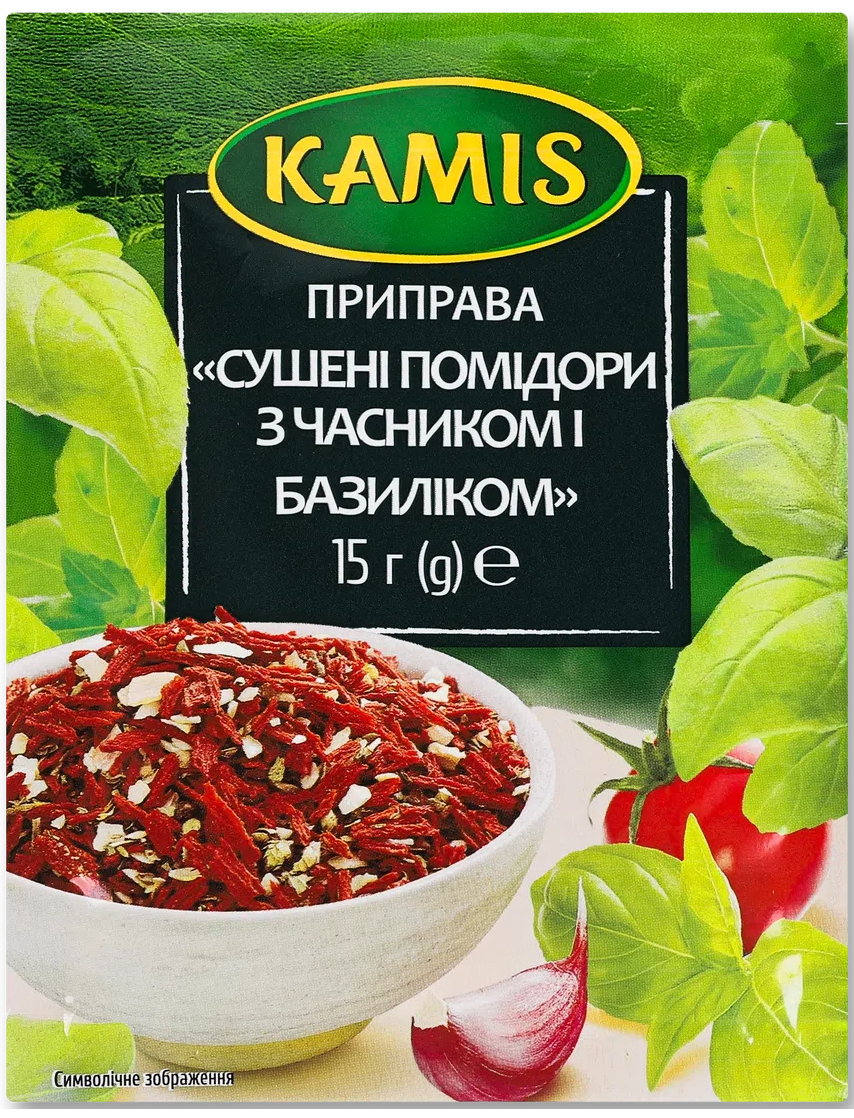 Мінімальна кількість для "Сушені помідори з часником та базиліком Kamis 15 г" є 5.