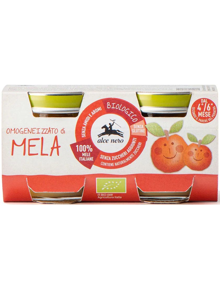 Органічне яблучне пюре Alce Nero виробляється з органічних яблук з італійських садів.