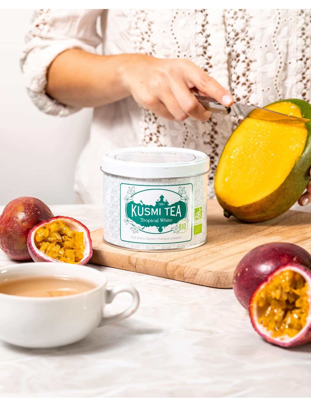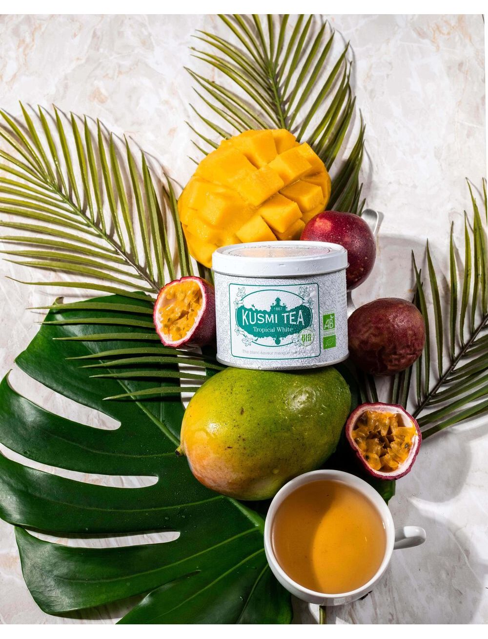 Змініть обстановку за допомогою органічного Tropical White, білого чаю з манго та маракуйєю.