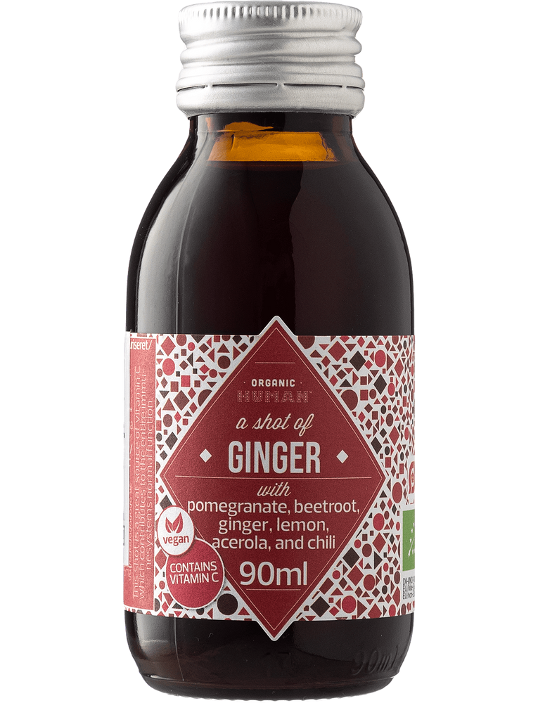 Імбир ”Zingiber officinale” відомий як лікарська рослина і трава. Коли рослині дають назву, яка включає латинську назву «officinale», ви знаєте, що ця рослина має медичну цінність. Корінь імбиру містить дуже потужні антиоксиданти, які сприяють захисту клітин і від окисленого стресу, а також чудово впливають на запалення. Цілющі властивості рослини були добре відомі ще в Стародавній Греції, деякі вважають, що рослина походить з Південно-Східної Азії. У Organic Human ми вирішили вичавлювати сік рослини замість порошку чи інших видів екстрактів, оскільки нам подобається додатковий «укус», який він надає, ми зробили чудову суміш із буряка/лимона/чилі та граната. Результат — гарний червоний колір і неповторний смак із ноткою гострого чилі.