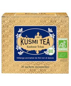 Органічний пряний чорний чай з ароматними спеціями. У 20 муслінових саше. Склад: чорний чай* 64%, спеції* (кардамон*, кориця*, імбир*, аніс*, лавровий лист*, гвоздика*, евкаліпт*) (35%), натуральні ароматизатори спецій. *Продукція органічного сільського господарства.