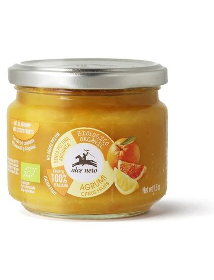 Органічний цитрусовий компоте Alce Nero виготовляється виключно з апельсинів і лимонів, вирощених в Італії, без додавання пектину. Фрукти делікатно готують для отримання компоту з м’якою консистенцією та вишуканим фруктовим смаком. Він ідеально підходить для розмазування та універсальний для широкого використання.
