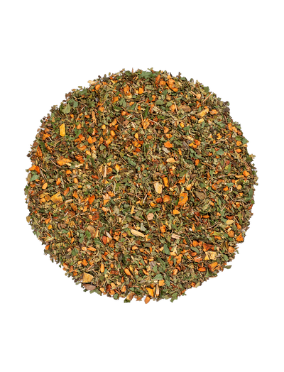 Органічна чайна суміш м’яти, вербени, яблука та солодки.