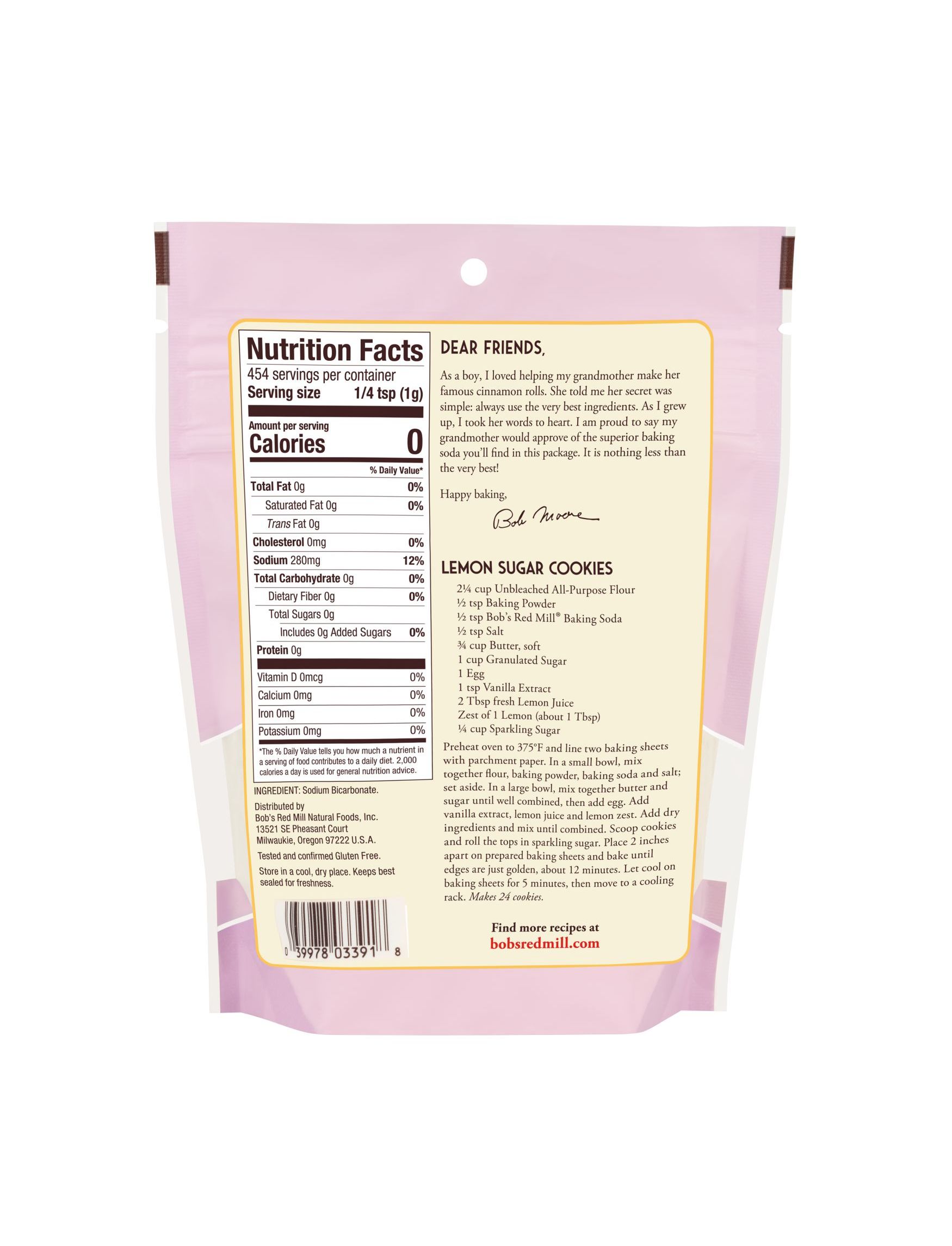У Bob's Red Mill наша харчова сода є золотим стандартом: використовуйте її в незліченних рецептах, включаючи торти, печиво, лепешки тощо. Цей безглютеновий продукт виробляється на нашому підприємстві, де на 100% не міститься глютен, і підлягає тестуванню партії ELISA, щоб переконатися, що він відповідає нашим суворим стандартам.