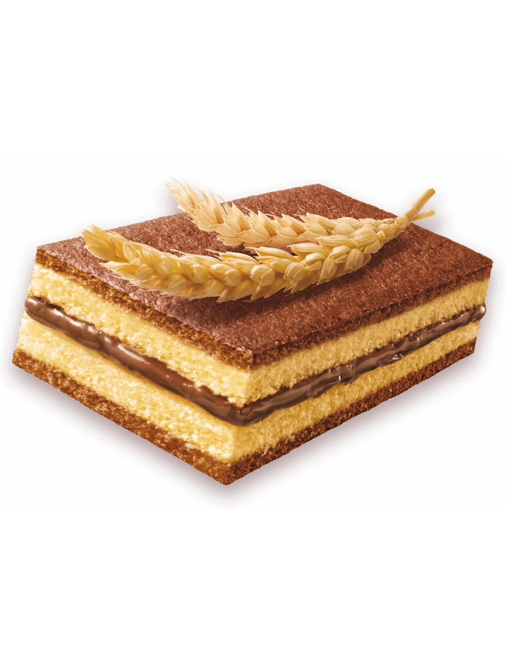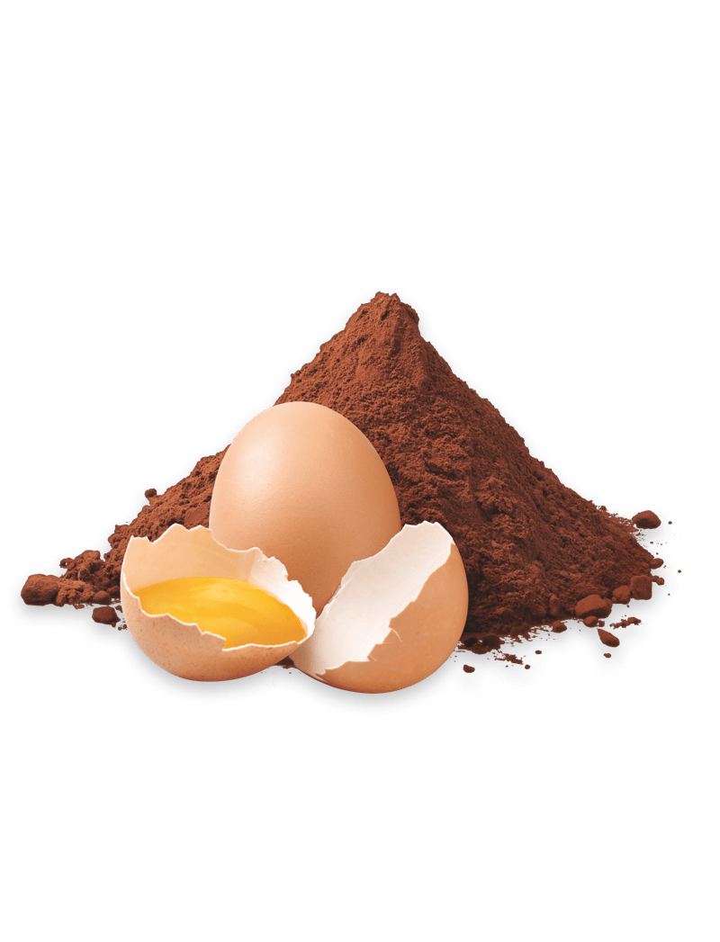Склад: цукор, ПШЕНИЧНЕ борошно (20%), ЯЙЦЯ свіжі (16%), сироп глюкозно-фруктозний, жири рослинні (пальмові), МОЛОКО знежирене згущене (7,5%), какао-порошок нежирний (2,8%), олії рослинні (соняшникова, оливкова олія у змінних пропорціях), сухе знежирене МОЛОКО, білки МОЛОКА, паста з ФУНДУКА, сіль, клітковина ПШЕНИЦЯ, емульгатори: моно- та дигліцериди жирних кислот, СОЄВІ лецитини; розпушувачі: карбонати амонію, карбонати натрію, дифосфати; аромати. Може містити інші ГОРІХИ.