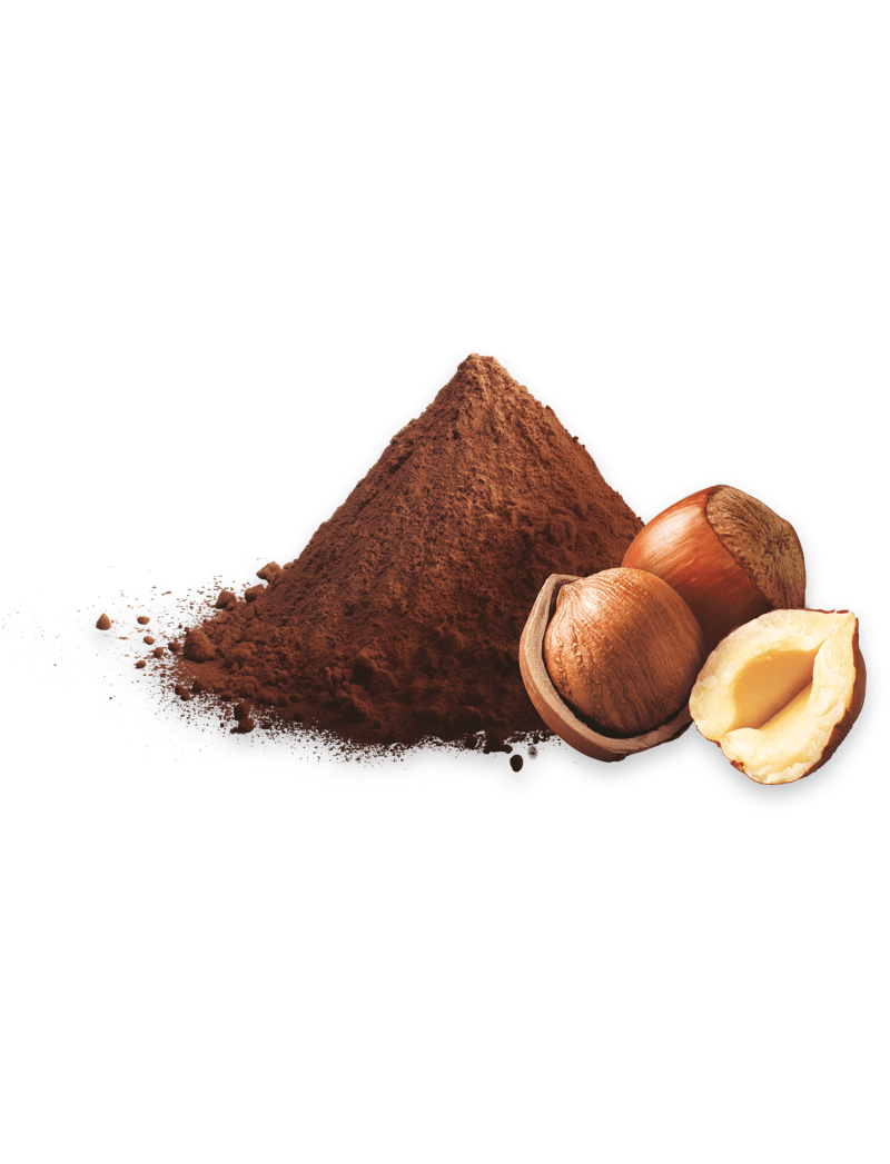 Склад: цукор, рослинні жири (пальма, пальмоядро, кокос у змінних пропорціях), глюкозно-фруктозний сироп, свіжі ЯЙЦА (11,5%), ПШЕНИЧНЕ борошно (11%), знежирене МОЛОКО (9,5%), сухе МОЛОКО, паста з ФУНДУКА (2,7). %), МОЛОКО сухе знежирене, какао-порошок низької жирності (1,8%), протеїни МОЛОКА, сіль, емульгатори: моно- та дигліцериди жирних кислот, лецитини СОЯ; розпушувачі: карбонати амонію, карбонати натрію, дифосфати; аромати. Може містити інші ГОРІХИ.