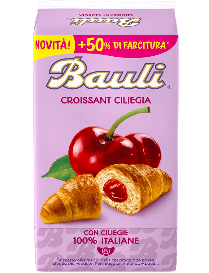 Круасан із ще більш м’яким і чарівним листковим тістом, який містить солодкий сюрприз: вишуканий і безпомилковий смак нашої італійської вишні. Весь смак круасану Bauli за ще кращим рецептом.