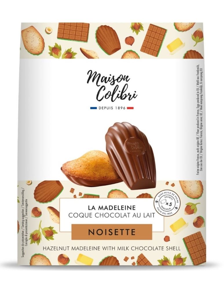 Для любителів молочного шоколаду відкрийте для себе вишуканий шоколадний рецепт Maison Colibri. Мадлен із лісовими горіхами та його оболонка з молочного шоколаду — справжня насолода, яка заспокоїть вас у будь-якій ситуації.