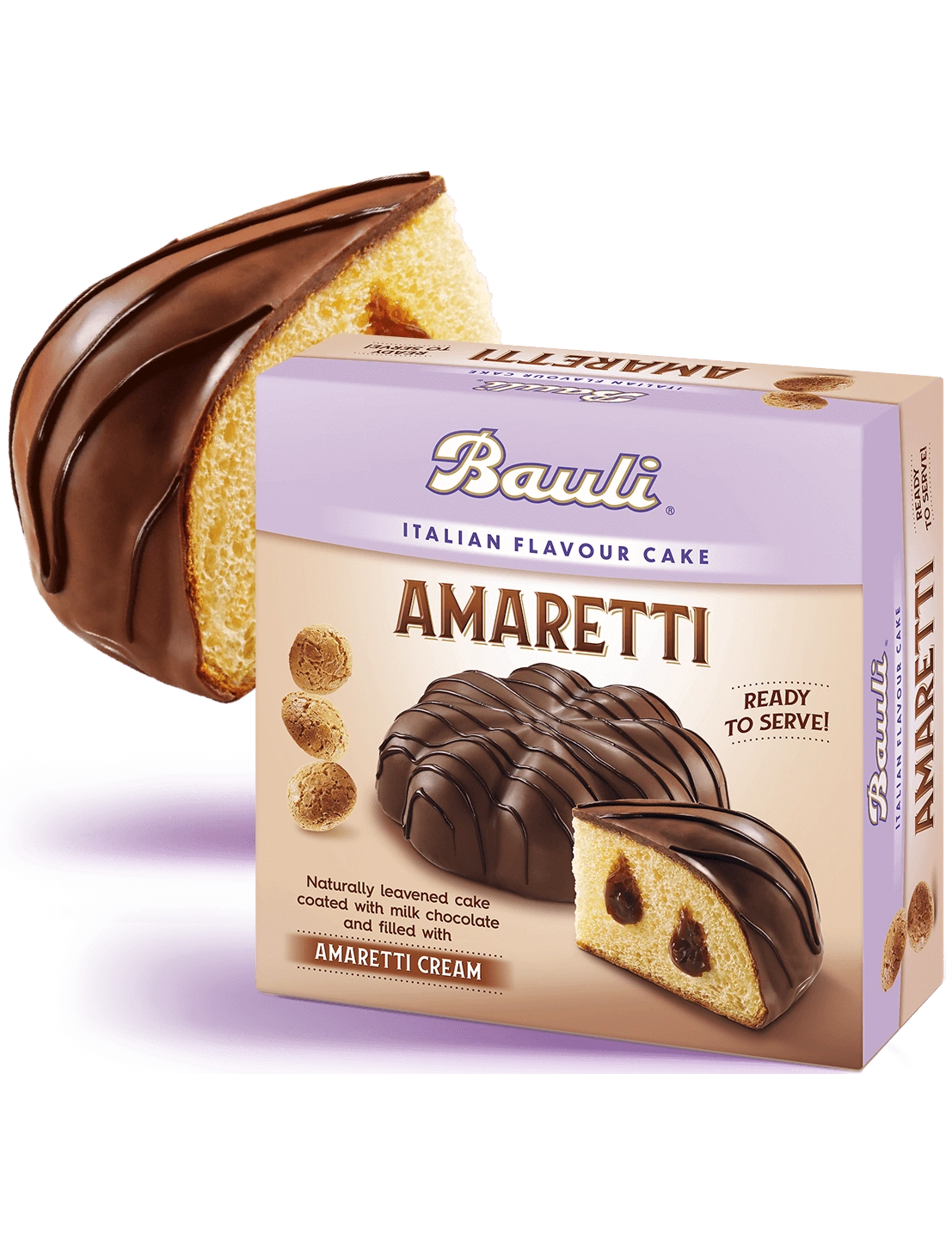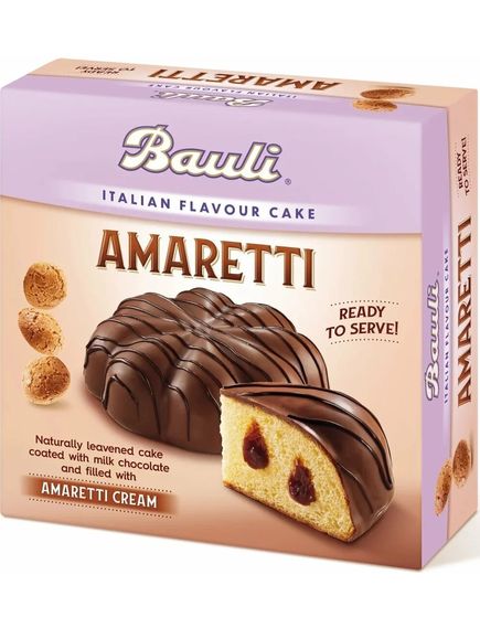 Склад: шеничне борошно, цукор, молочний шоколад (14,6%) (цукор, олія какао, знежирене сухе молоко, какао-маса, вершкове масло, емульгатор: соєвий лецитин, Е476; ароматизатори), яйця, олії та жири (пальмові, соняшникові) ) у змінних пропорціях, глюкозо-фруктозний сироп, натуральні дріжджі (з пшениці), темний шоколад (2,1%) (цукор, какао-маса, какао-масло, емульгатор: соєвий лецитин; ароматизатори), знежирене молоко, порошок печива Амареті (1,1%) (цукор, абрикосові кісточки, яєчний білок, молочний білок, лактоза, емульгатор: гідрокарбонат натрію, гідрокарбонат амонію; ароматизатори), спирт 2%, олія, емульгатор: моно- та дигліцериди жирних кислот яєчний жовток, ароматизатори, сіль, консервант: сорбат калію. Може містити горіхи.