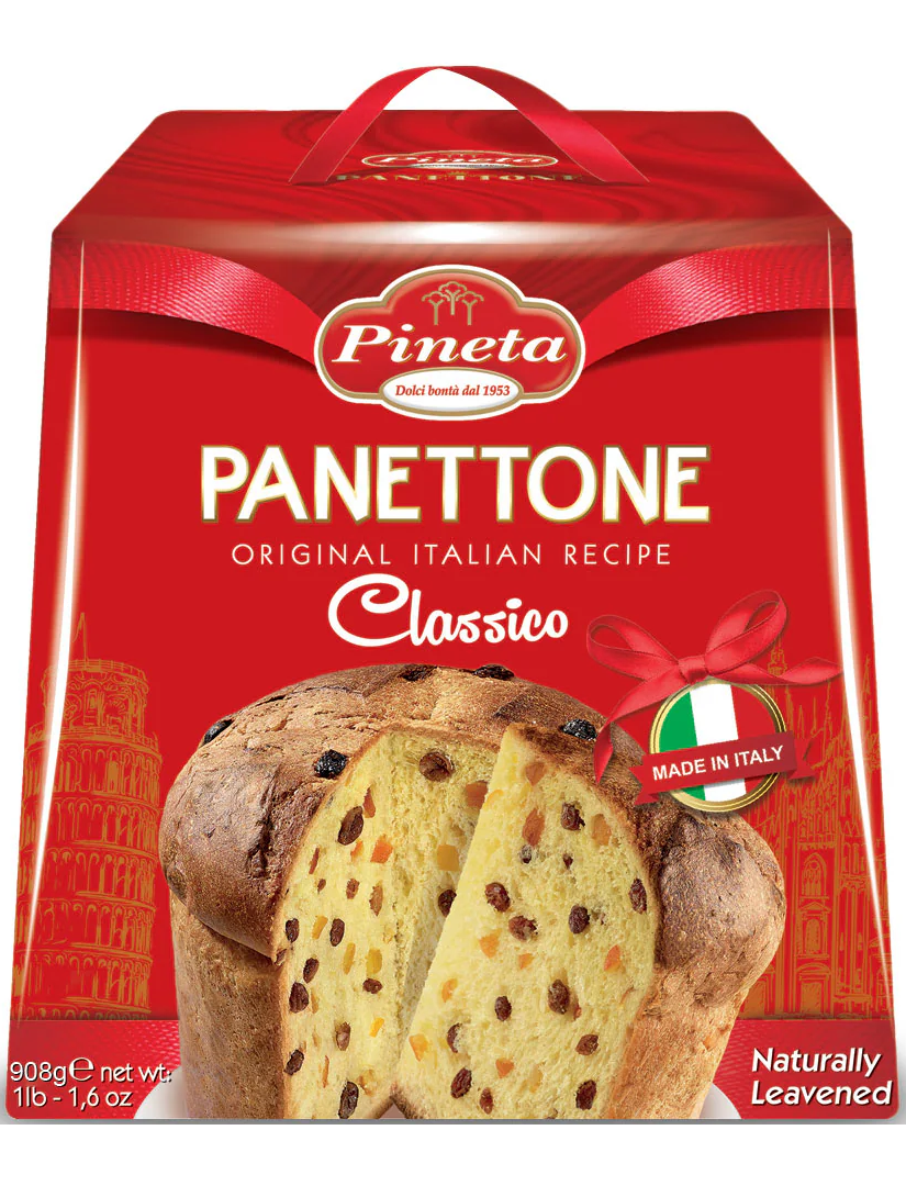 Цей класичний панеттоне готується шляхом ретельного відбору найкращої італійської пшениці та дотримання традиційного старовинного рецепту для отримання найкращого смаку, м’якості та високої якості.