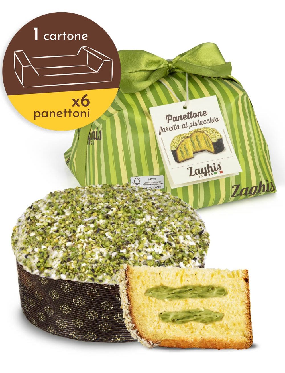 Чудовий панеттоне з ніжним та вишуканим смаком, де неповторний смак фісташок поєднується з приємною ніжністю білого шоколаду.