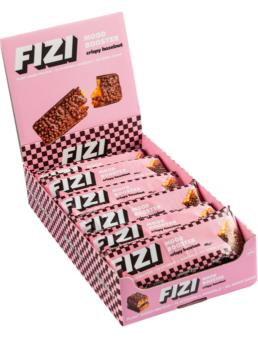 Mood Booster – це лінійка низькокалорійних батонів від FIZI, що поєднують смак і збалансований склад. Кожен батончик містить 10 вітамінів і мінералів, порцію клітковини і менше ніж 1 грам цукру. І вся ця смакота – лише до 160 калорій. Поживний перекус і гарний настрій гарантовано!