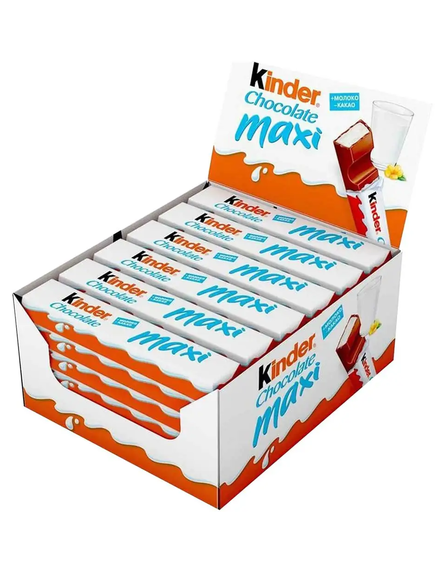 Велика упаковка молочного шоколаду Kinder Maxi - це 36 шоколадних батончиків з молочною начинкою в новому зручному форматі. Зручна упаковка і збільшена порція прекрасно підходять для легкого перекусу.