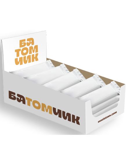 Склад: молочний шоколад, арахісова паста, карамель солона класична, смажений арахіс, гороховий протеїн, глюкозний сироп, сік яблучний концентрований.