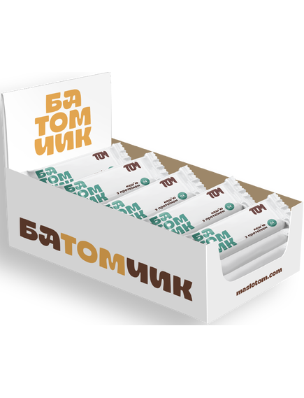 Склад: молочний шоколад, паста кешʼю, гороховий протеїн, глюкозний сироп, сік яблучний концентрований, сіль морська.