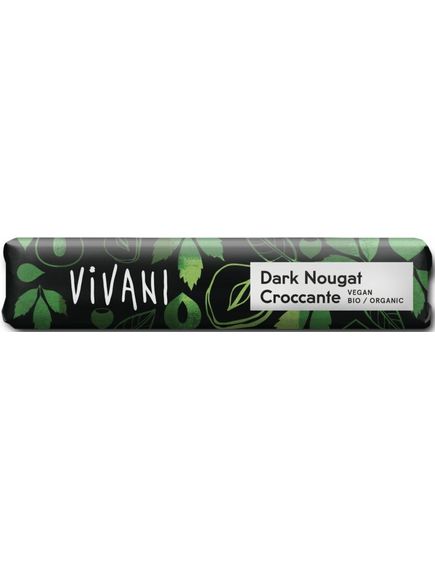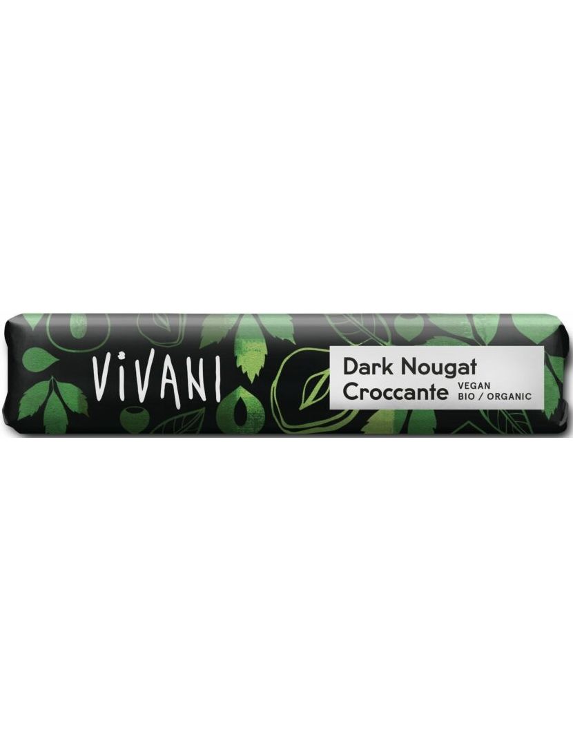 Популярна шоколадна плитка VIVANI з темною нугою в зручному форматі плитки. Вершкова спокуса витончена крихкими шматочками смаженого фундука, які надають батончику хрусткості. Оскільки в рецепті немає коров’ячого молока, ця нуга з високим вмістом фундука також підходить для веганської дієти.