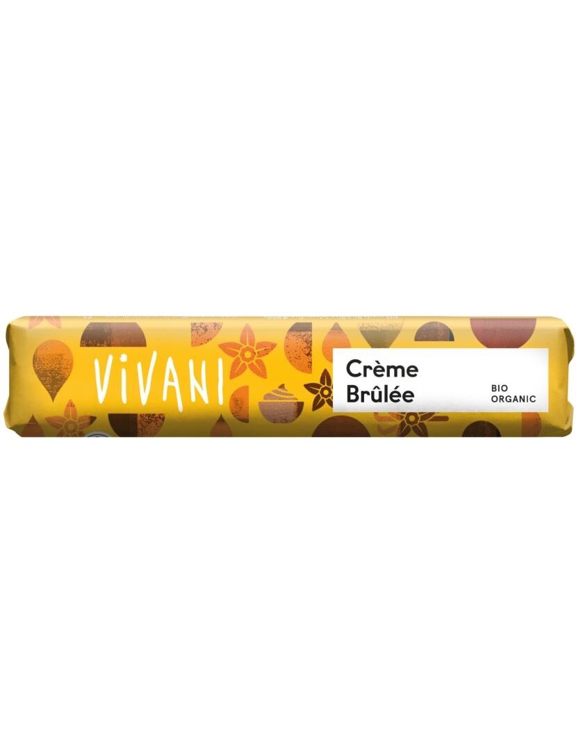 Варіант VIVANI «Крем-брюле» з тонким незбираним молочним шоколадом наповнений ніжним молочним кремом і хрусткою карамеллю. Улюблений десерт нарешті у барному форматі.
