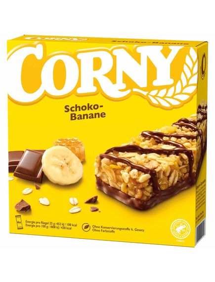 6 батончиків граноли в індивідуальній упаковці з сушеними бананами та молочним шоколадом.