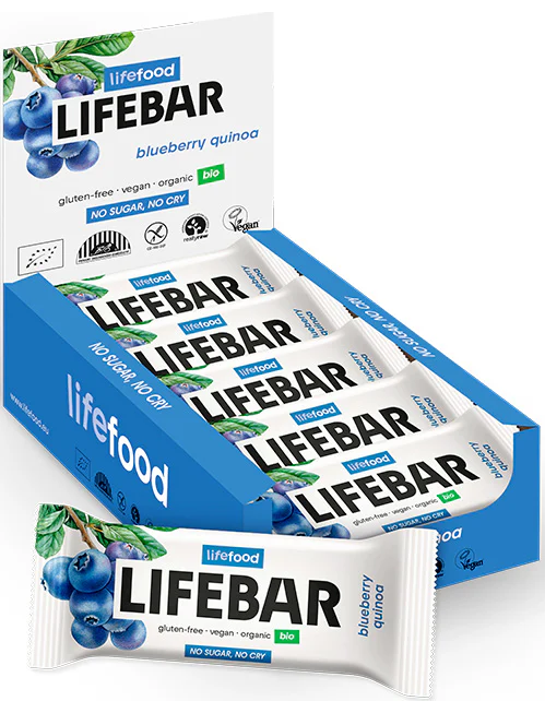 Батончики Lifebar на основі фініків у поєднанні з суперпродуктами представляють собою виняткову комбінацію, яка забезпечує різноманітний смак, а також багату дозу поживних речовин та енергії. Фруктовий батончик не містить горіхів. Він має високий вміст антиоксидантів і є джерелом заліза та марганцю. Побалуйте себе поживною закускою, повною сушеної чорниці, білої шовковиці та кіноа, яка додасть вам енергії та вгамує голод, коли вам це буде потрібно.