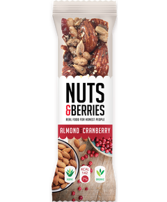 З 53% мигдалю та журавлини, бразильськими горіхами, насінням соняшнику, листковим рисом, какао-крупкою, насінням чіа, рисом та сиропом агави.