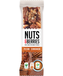 З 48% горіхів пекан, бразильських горіхів, мигдалю, горіхів кеш'ю та кориці, і насіння соняшнику, журавлини, ягог годжі, листкового рису, рису і сиропу агави.