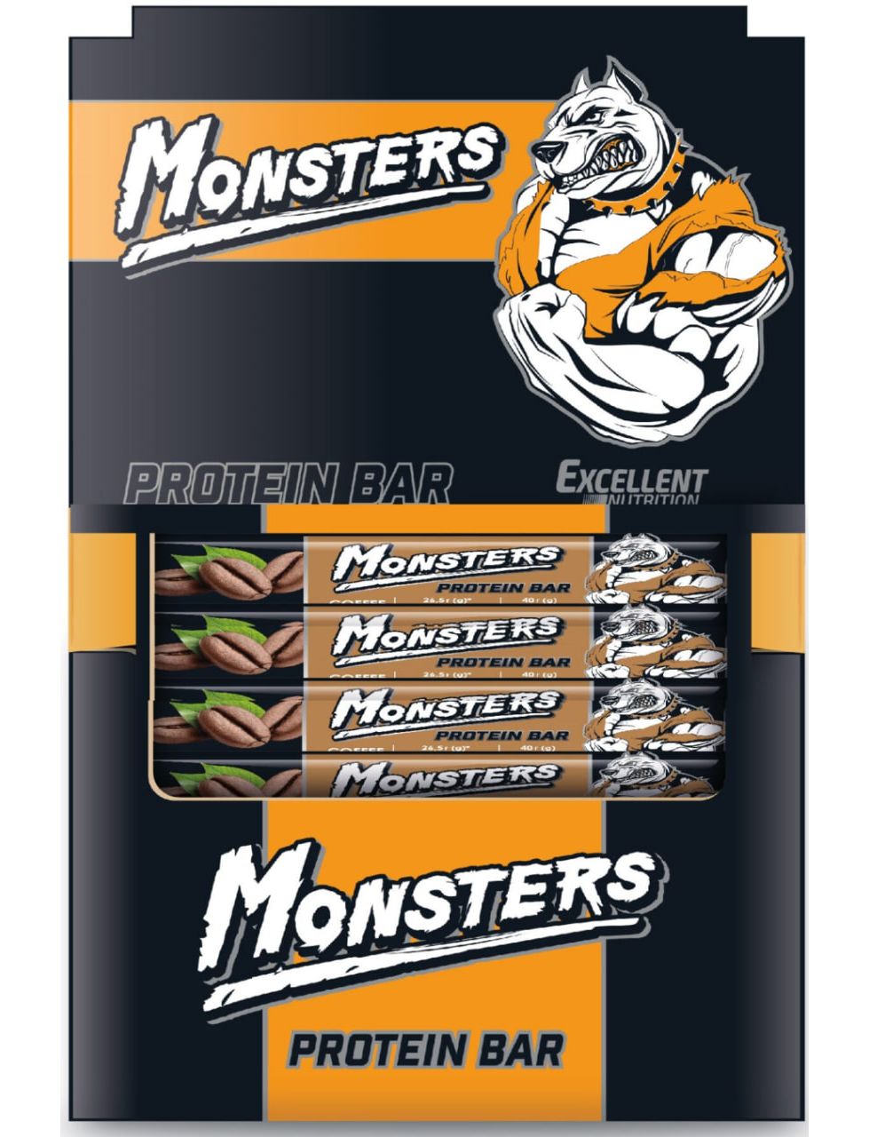 Склад: глазур кондитерська 20,9% (цукор білий, жир рослинний [фракція частково гідрогенізованого жиру з пальмоядрової олії], какао-порошок, емульгатор СОЄВИЙ ЛЕЦИТИН, ароматизатори «Шоколад», «Ванілін»), глюкозно-фруктозний сироп, патока крохмальна, ізолят СОЄВОГО білку 18,9%, концентрат СИРОВАТКОВОГО білку 8,8%, жир рослинний [олія кокосова рафінована], кава натуральна смажена мелена 1,5%, L-лейцин, L-ізолейцин, L-валін, ароматизатор «Кава», консервант сорбінова кислота. Може містити сліди АРАХІСУ та ГОРІХІВ.