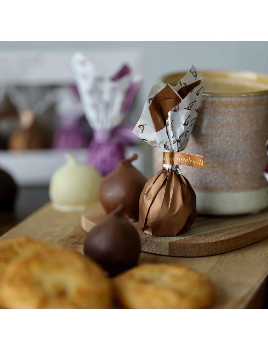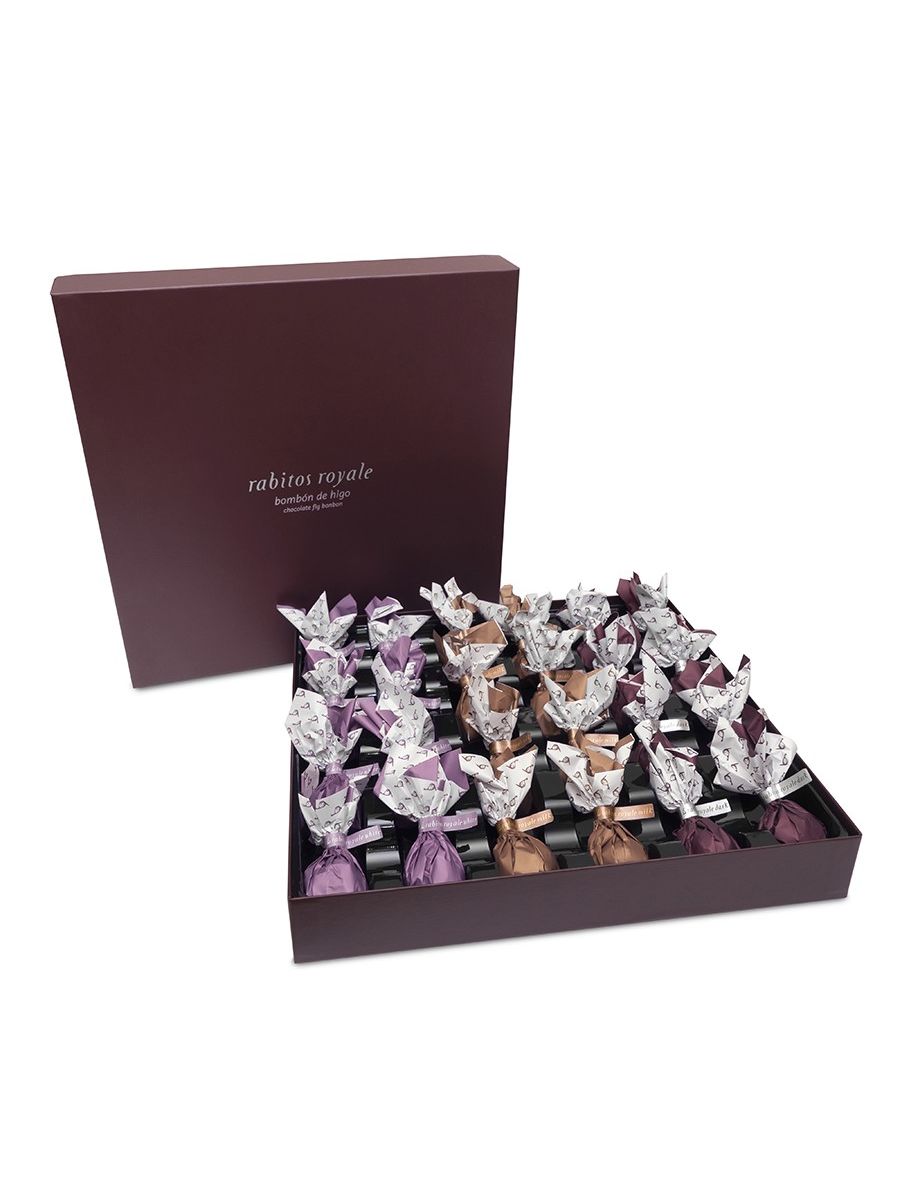 Ми представляємо вибір наших Rabitos Royale, який включає Rabitos Royale Dark з темним шоколадом і відтінком коньяку, Rabitos Royale Milk з молочним шоколадом і відтінком солоної карамелі та Rabitos Royale White з білим шоколадом і відтінком полуниці.