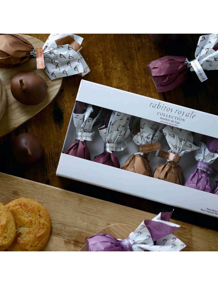 Ми представляємо вибір наших Rabitos Royale, який включає Rabitos Royale Dark з темним шоколадом і відтінком коньяку, Rabitos Royale Milk з молочним шоколадом і відтінком солоної карамелі та Rabitos Royale White з білим шоколадом і відтінком полуниці.