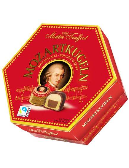 Праліне з начинкою з фісташкового марципану 34%, марципану 22% та горіхового праліне 12%, покриті молочним шоколадом 16% та темним шоколадом 16%