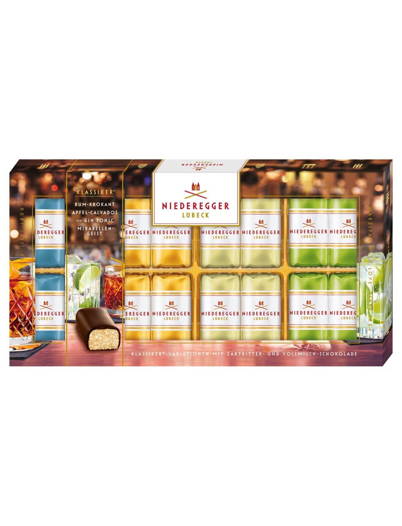 Склад: МИГДАЛЬ 38%, цукор, цільномолочний шоколад 14% (цукор, какао-масло, ЦІЛЬНЕ ПОСУХЕ МОЛОКО, какао терте, емульгатор : лецитин (СОЯ), ванільний екстракт), темний шоколад 14% (какао-масло, цукор, какао-масло, ЦІЛЬНЕ МОЛОКО) . ПОРОШОК , емульгатор: лецитини (СОЯ), екстракт ванілі), інвертний цукровий сироп, яблучний 0,9%, ром 0,7%, ЛІСОВИЙ ГОРІХ 0,7%, алкоголь, вода мірабель 0,5%, джин 0,5%, натуральні ароматизатори, глюкозно-фруктозний сироп, кальвадос 0,3%, натуральний яблучний ароматизатор з іншими натуральними ароматизаторами, препарат сухого лимона (декстроза, мальтодекстрин). , підкислювач: лимонна кислота, концентрат лимонного соку), підкислювач: лимонна кислота