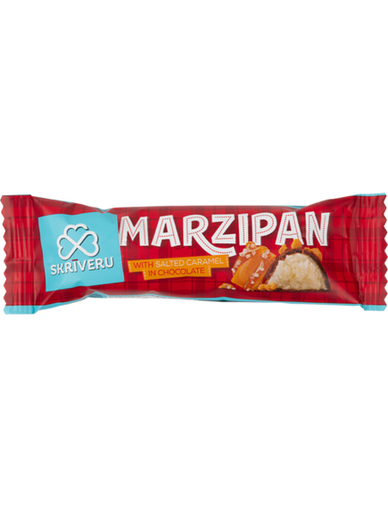Склад: марципанова маса 64% (цукор, мигдаль 38%, вода, засіб, що зберігає волосу: сорбіт, інвертований цукровий сироп, глюкозний сироп, інверсійний агент), чорний шоколад – 24% (какао-маса (сухе какао (твердих речовин 30%)), цукор, масло какао, молоко сухе незбиране, емульгатор – соєвий лецитин, натуральний ванільний ароматизатор), шматочки карамелі 8% (цукор, масло какао, крохмаль рисовий, сіль морська, розпушувач: сода), ароматизатор: карамель, сіль морська. Може містити частинки арахісу.