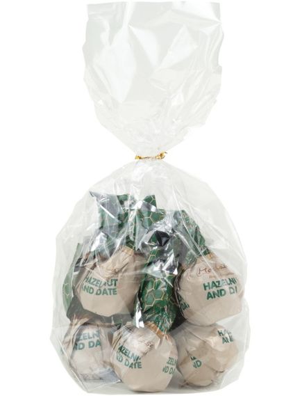 Склад: фініки, чорний шоколад (какао терте, какао масло, мед),  какао порошок, кокосова стружка, фундук, кокосове масло, натуральний екстракт ванілі, сіль морська. Завдяки своєму складу цукерки дуже ситні та смачні. Природне джерело корисних мікроелементів, у складі тільки натуральні...
