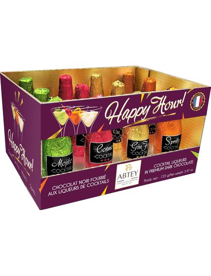 Склад: інвертний цукровий сироп, цукор, какао-маса, какао-масло, спирт, джин (1,35%), білий ром (1,3%), горілка (0,96%), куантро (0,48%), емульгатор: соєвий лецитин, ароматизатори, екстракт ванілі. Мінімальна кількість какао в шоколаді: 51%. Може містити горіхи та молоко.