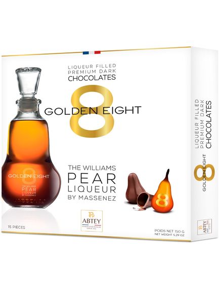 Склад: інвертний цукровий сироп, цукор, какао-паста, масло какао, лікер Golden 8 (вода, спирт, грушевий бренді Williams, натуральні ароматизатори) (8,1%), спирт, емульгатор: соєвий лецитин, екстракт ванілі. Мінімальний вміст какао-продуктів в шоколадній масі: 51%. Країна походження шоколаду: Франція, Бельгія, Німеччина. Може містити горіхи та молоко.
