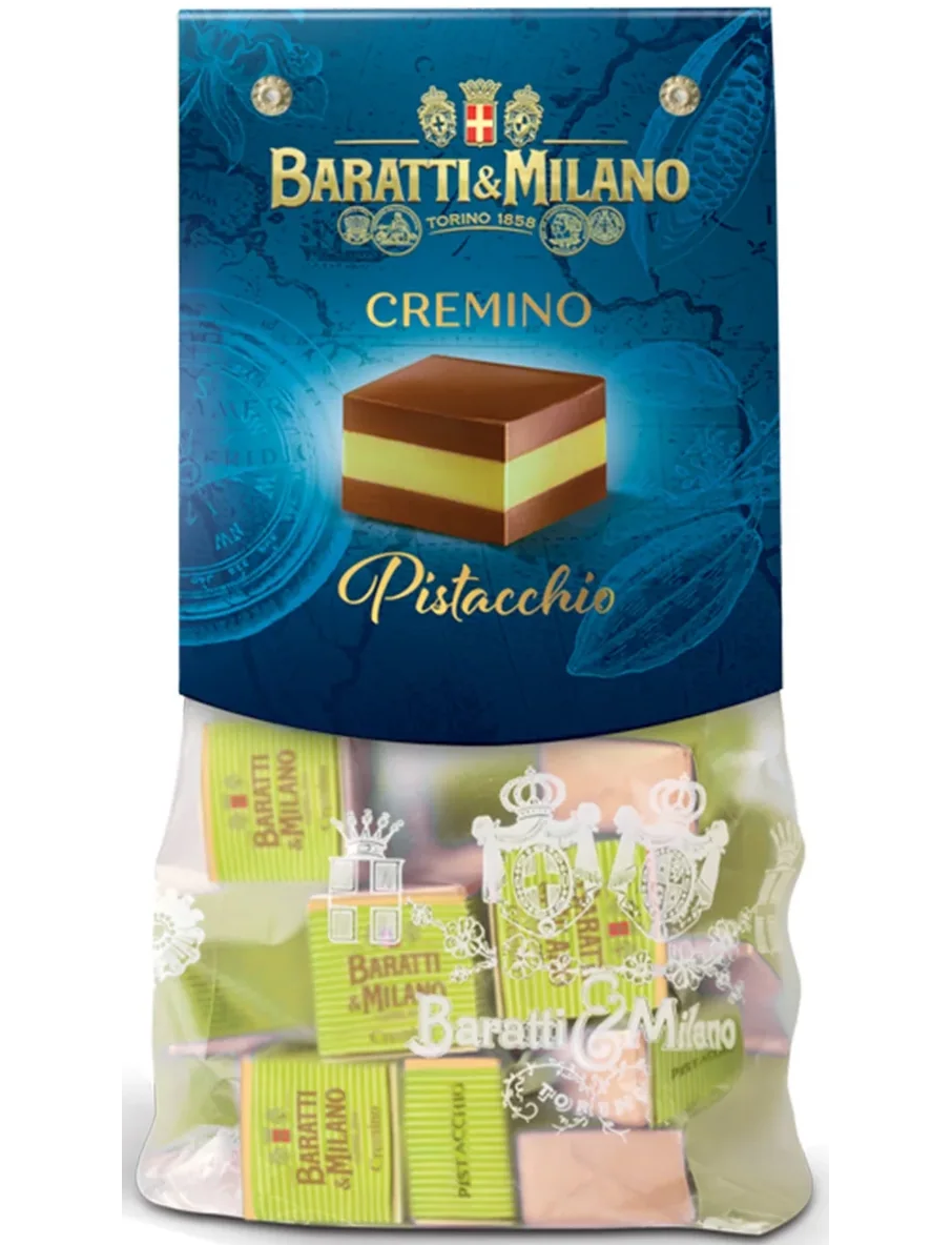 Серед останніх витворів мудрості кондитерської Baratti & Milano — особливий Cremino з двома м’якими шарами смачної джандуї, що оточує центральний шар вишуканого фісташкового крему. У цій практичній сумці ви знайдете 200 грамів Cremini Pistacchio Baratti & Milano.
