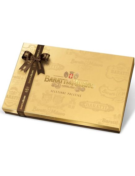 Пакет Prestige Gold Selection Pack, виготовлений із твердого картону, стане ідеальним подарунком для тих, хто любить розкіш і смак шоколаду. Baratti & Milano вибрав асортимент із 8 різних ексклюзивних праліне та шоколаду, починаючи від найбільш класичних і закінчуючи найбільш інноваційними смаками, усі вони загорнуті в елегантну упаковку та прикрашені вишуканою стрічкою. Кожна шоколадна цукерка — це маленький шедевр, виготовлений із найкращих інгредієнтів, таких як какао та лісові горіхи з П’ємонту. Пакет, створений для святкування особливих моментів із ноткою стилю та неповторної солодкості. Усередині колекція представлена Cremino Classico, Cremino Extra Noir, Cremino Pistachio, Cremino 4 Emozioni di Gusto, горіхове праліне 1858, класичний і темний Gianduiotto, екстра темний шоколад "Asso" 70% какао.