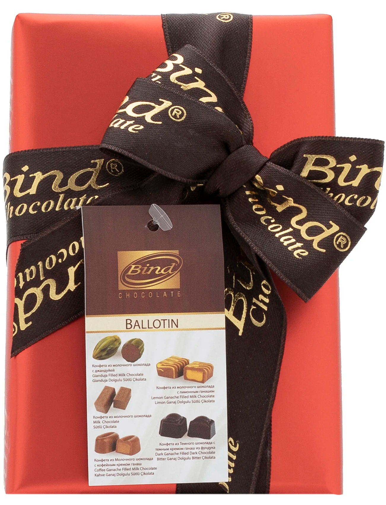 Склад: Молочний шоколад [цукор, какао-масло, незбиране сухе молоко, знежирене сухе молоко, какао терте, молочний жир, емульгатор (соняшниковий лецитин), ароматизатор (ваніль)], темний шоколад [какао терте, цукор, какао-масло, какао-порошок, емульгатор (соняшниковий лецитин), ароматизатор (ваніль): Залежно від виду ганаш (цукор, какао-масло, глюкозний сироп, незбиране молоко сухе, пастеризоване молоко, какао-терте, олія лісового горіха, емульгатор (соняшниковий лецитин). , за типом (кава, частинки лимона), ароматизатор (кава, лимон), ароматизатор (ваніль), барвник (екстракт паприки E160C, антоціани E163), Gianduja (цукор, пюре з лісових горіхів, рослинна олія (лісовий горіх), сухе незбиране молоко, сухе знежирене молоко, какао-порошок, емульгатор (соняшниковий лецитин), ароматизатор (ваніль).