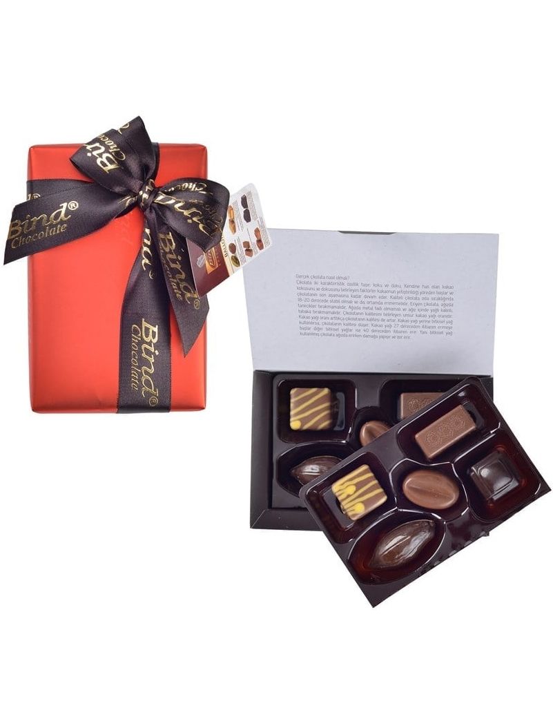 Шоколадні цукерки асорті в червоній подарунковій коробці.