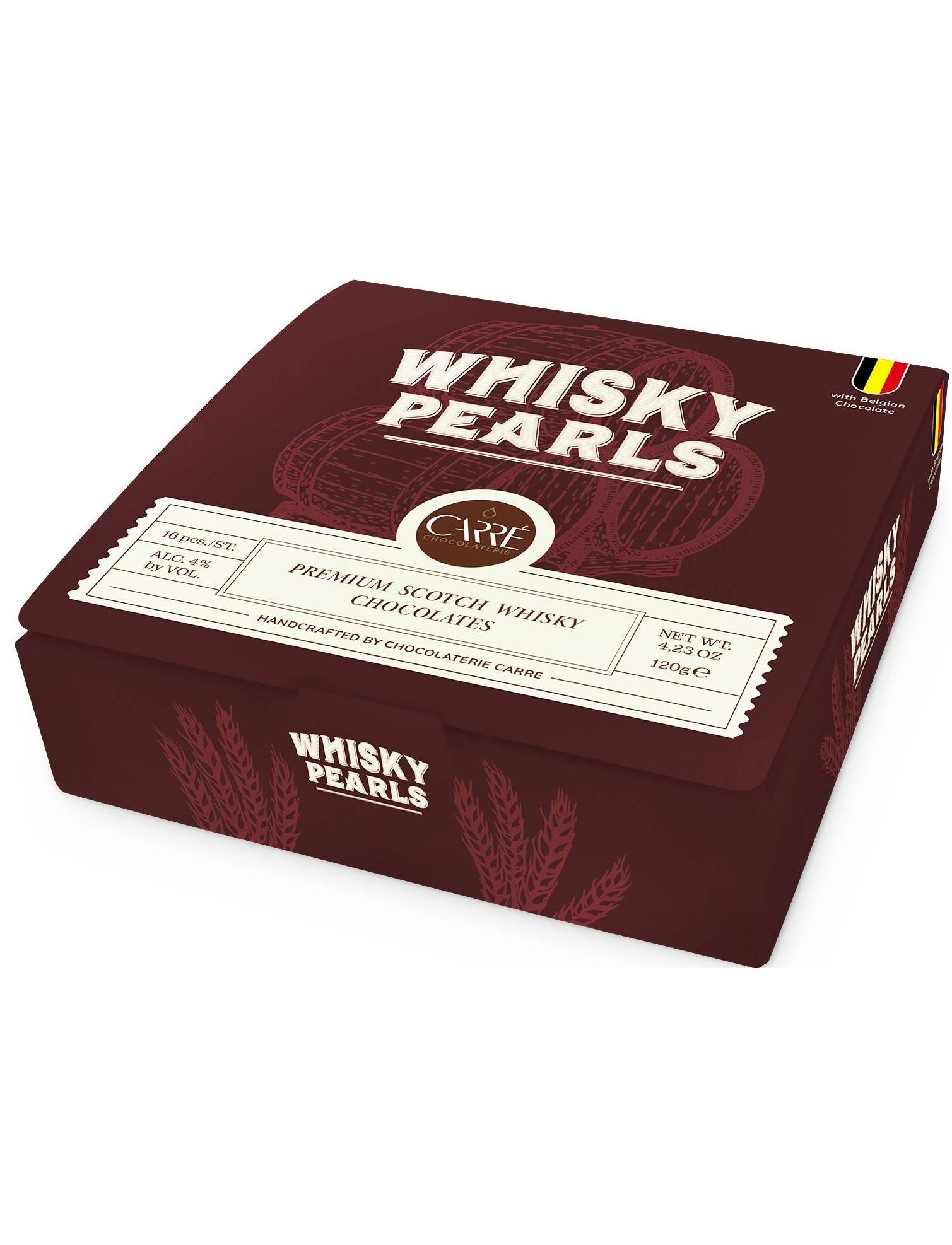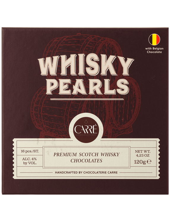 Цукерки Chocolaterie Carre з темного шоколаду з віскі – це вишукані шоколадні цукерки, які поєднують насичений бельгійський шоколад із міцним, витриманим шотландським віскі. Кожна цукерка – це маленька перлина, що приховує в собі справжню глибину смаку: оксамитова текстура шоколаду розчиняється, відкриваючи ароматний віскі з тонкими деревними нотами та теплим післясмаком.