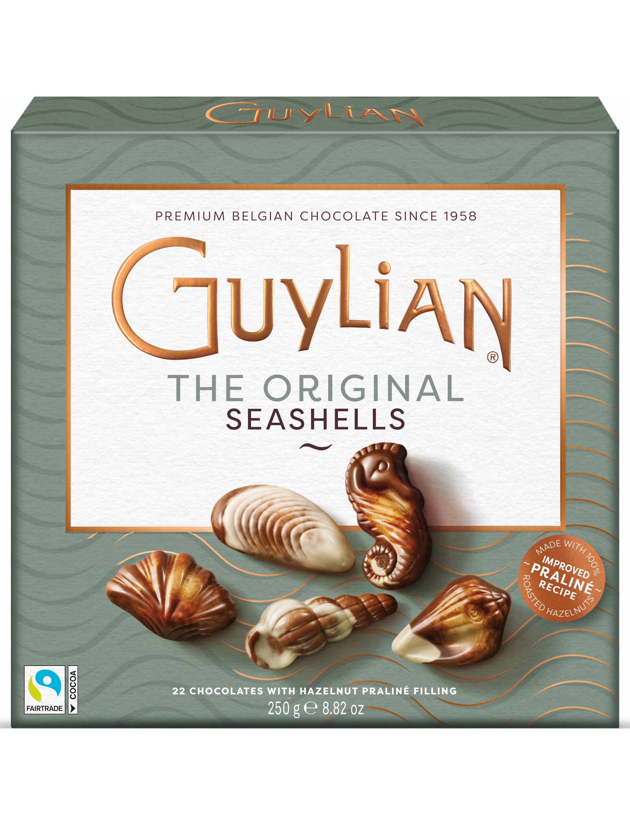 Любителі шоколаду в усьому світі люблять шоколад Guylian за його вишуканий смак. Повільно насолоджуйтесь дивовижним шоколадним досвідом із розкішним кремовим відчуттям у роті та насиченим післясмаком. Улюблені у світі бельгійські шоколадні морські мушлі — головний продукт Guylian. Кожна ретельно виготовлена оболонка є сумішшю чудового білого, молочного або темного бельгійського шоколаду, виготовленого з найкращих західноафриканських какао-бобів і наповненого чудовим праліне зі смаженого лісового горіха Guylian, яке все ще виготовляється за оригінальним рецептом виробництва батька-засновника компанії Гі Фубера. Цінителі шоколаду в усьому світі люблять його за вишуканий смак, блиск і чудово виліплені мармурові форми.