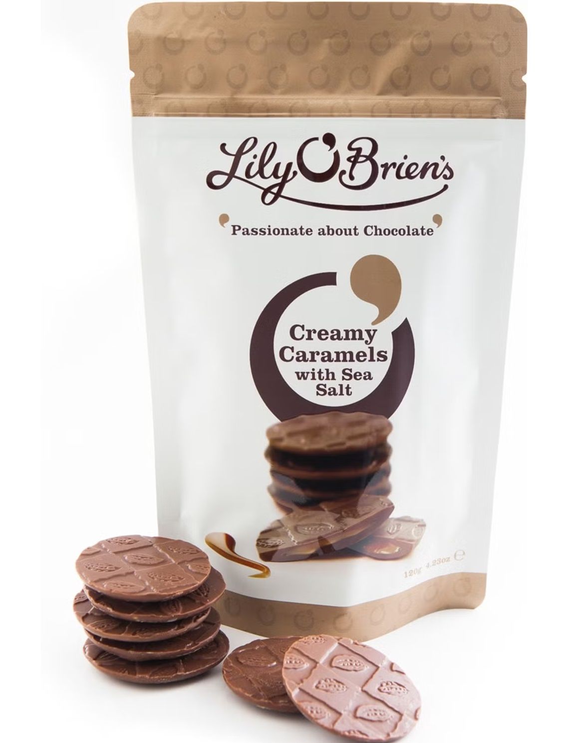 Гладка вершкова карамель у тонкому форматі з карамеллю та морською сіллю в центрі – знаменитий молочний шоколад Лілі О'Брайен. Цей пакет для перекусів, що закривається, є ідеальним ласощами. Кожен пакетик містить 12 кремових карамелей і важить 120 г.